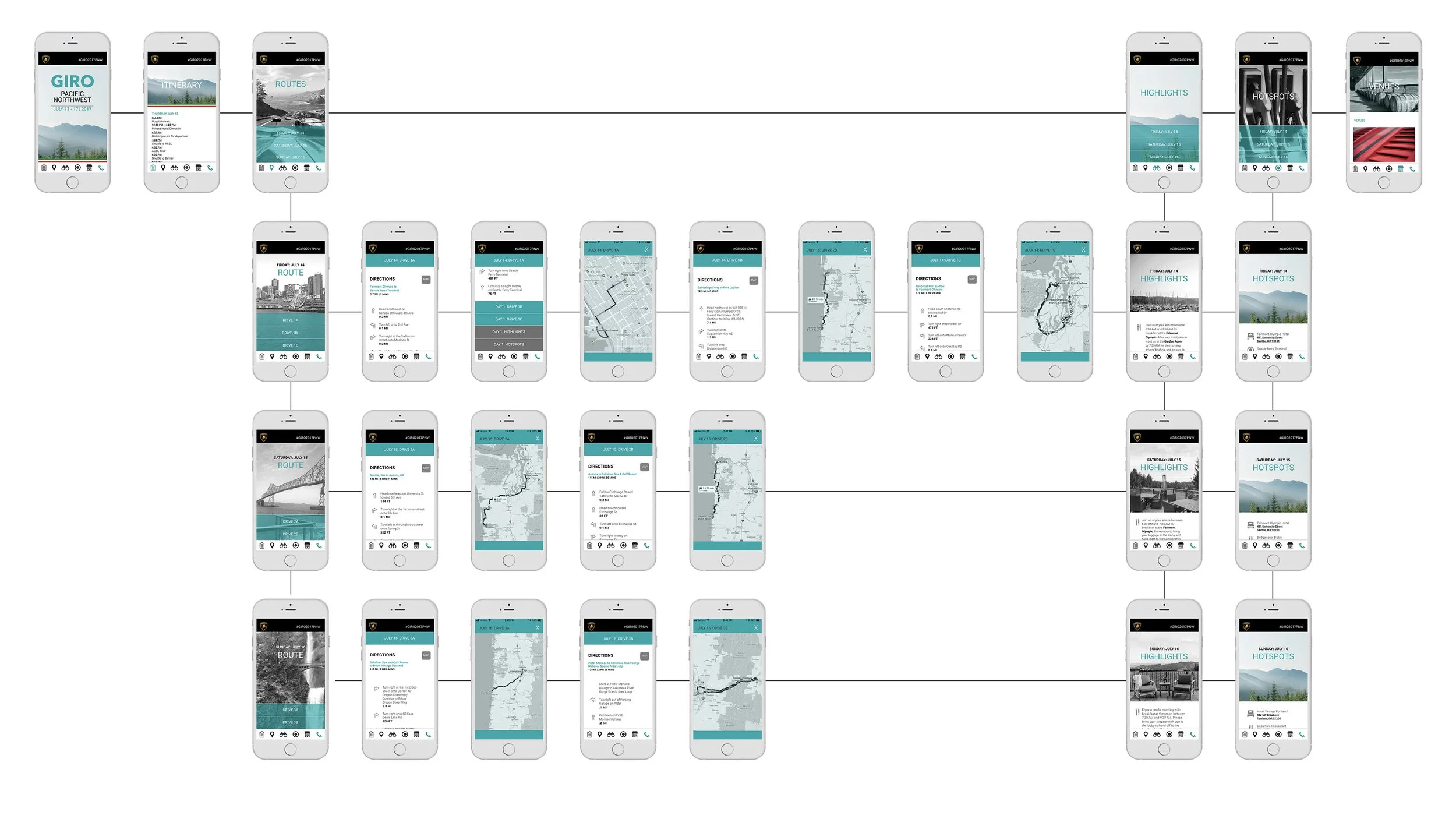 This first-ever application for a North America Lamborghini event was designed to replace the printed route books that had been historically distributed to Giro guests.